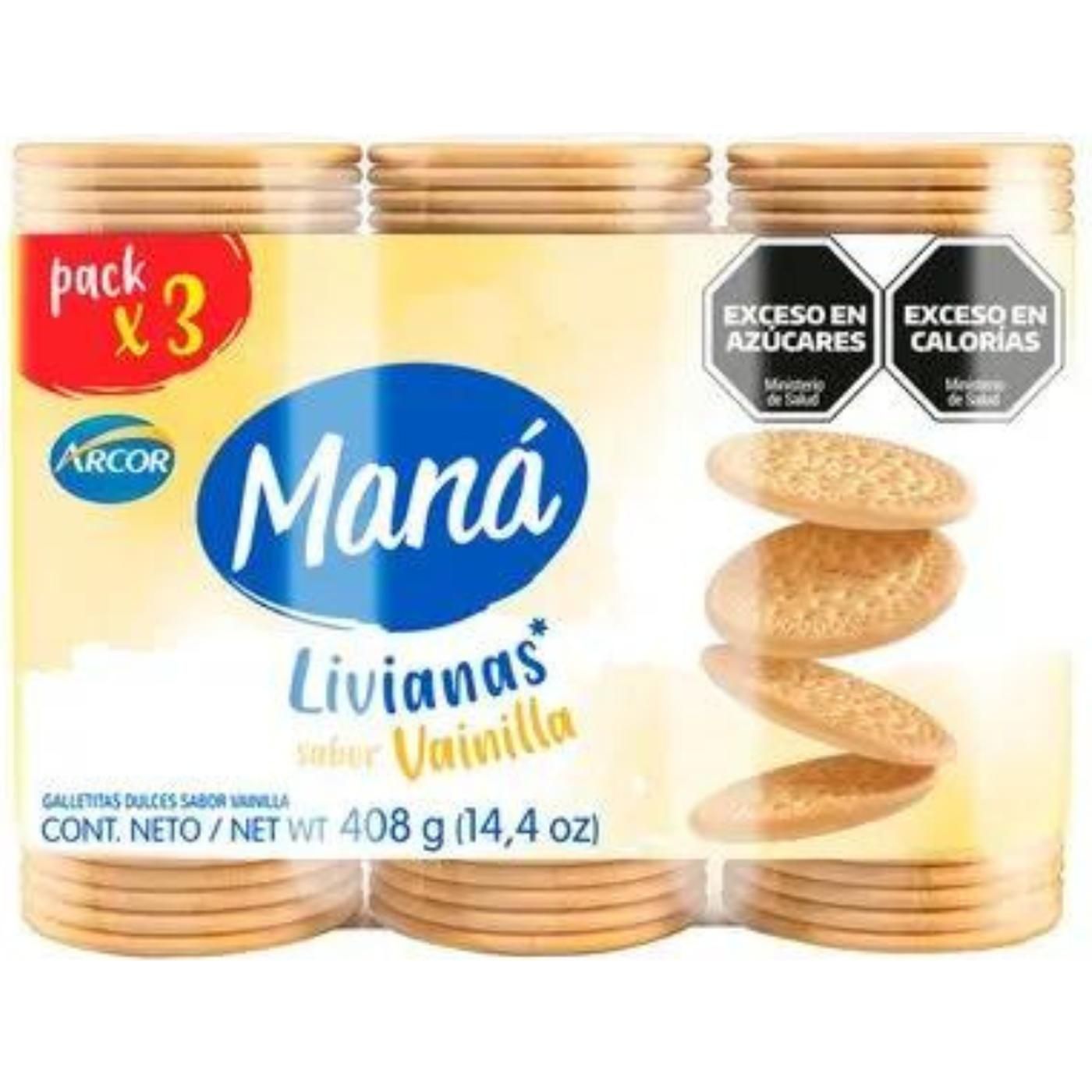 3 Pack Galletitas Mana Sabor Vainilla 136 g